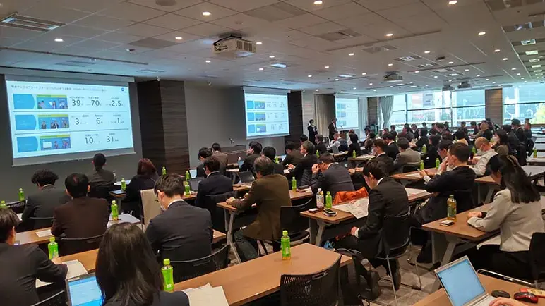 Many comments were received, such as "We found a company to benchmark for environmental management," "Practical examples for strengthening supplier collaboration regarding Scope 3 were helpful," and "We were able to network with other companies, leading to business opportunities." A social gathering allowed participants to exchange business cards and deepen their relationships to solve problems through cross-company collaboration.