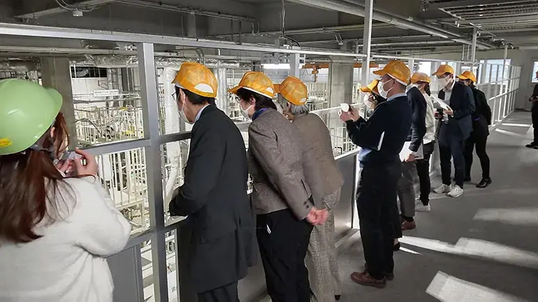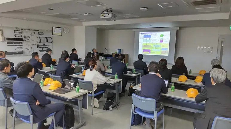As part of the Circular Economy Working Group of the Environmental Digital Platform, a factory tour was conducted at Green Cycle Systems Corporation, an affiliate of Mitsubishi Electric Corporation, with their cooperation. Eighteen environmental planning and promotion staff from nine companies participated in the visit, where they observed the plastic recycling process for home appliances.