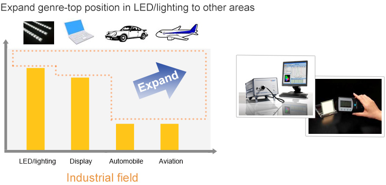As the leading manufacturer in display light-source color measurement, Konica Minolta has for some time provided the high-quality measuring instruments that are the industry standard. To meet measurement needs for LED lighting, which has seen rapid growth in recent years, we welcomed to the Group Instrument Systems GmbH, a leader in the lighting industry with strengths in technology and marketing, reinforcing our lineup of measuring instruments. As a result, we achieved the top position in the overall global light-source color measuring field. Going forward, we are aiming for the genre-top position in measuring object color, such as in automobiles and airplanes.