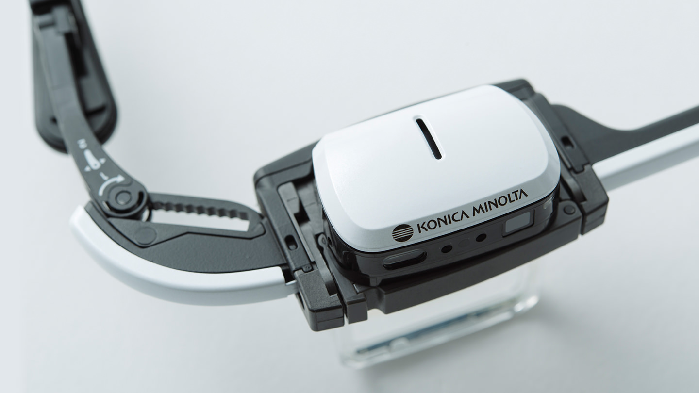 The WCc is an eyeglass-type communicator that can provide information in real time and provide navigation so that work tasks are completed without error. Konica Minolta’s proprietary holographic optical elements are lightweight, compact, and highly transparent so that they won’t block the wearer’s field of view. Because it can be worn continuously, WCc allows instructions to be sent in a timely manner, reducing work times and improving quality.