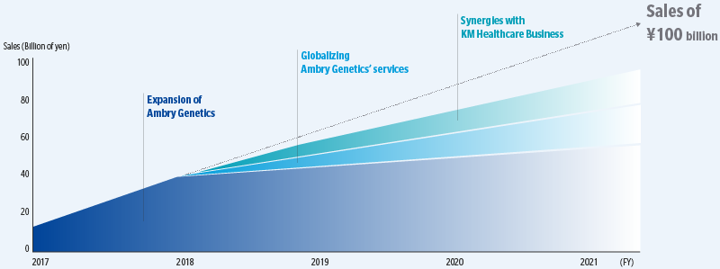 The global precision medicine market is estimated to be roughly $4 billion. This is expected to grow quickly, hitting $7 billion in five years and $10 billion in ten years. By providing high added-value diagnostic services not achievable by any other company in the industry, we will construct a high profit business model that will aim for sales of ¥100 billion and a 20% operating profit ratio by fiscal 2021.