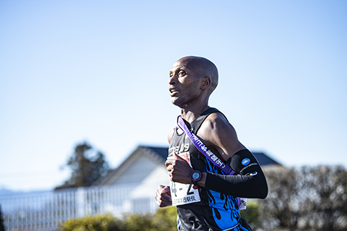ワールドクラスの外国人選手がしのぎを削る2区。昨年に続き2回目の出場となるドミニク・ランガット選手は、序盤から積極的に前を追い、区間12位の走りで順位を4つ押し上げ15位と健闘します。