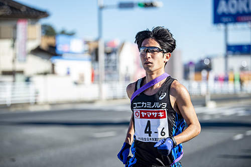 6区を任されたのはコニカミノルタとして今回が初出場となる我那覇和真選手。山本選手からの流れを受け、一気に入賞ラインまで押し上げたかったところですが、順位を上げることができず12位でアンカーへとつなぎます。