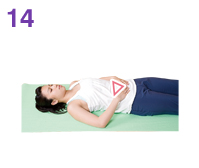 仰向けになり、両手を頭の上で組んで、全身を大きく伸ばします。
