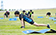 続いて腹筋、背筋、サイドなどの体幹、そしてお尻の筋肉を鍛える補強運動。選手たちも行っているメニューだけに、中には難易度の高いものも。参加者のうめき声も徐々に大きくなっていきます。「走る動きを意識して〜」「はい、休まな〜い!」「息止めないで、しっかり吐いて〜」など、コーチ陣からはアドバイスとも叱咤ともとれる掛け声がどんどん飛び出してきます。最後は宇賀地コーチ、蜂須賀選手それぞれのスペシャルメニューで下半身の主要筋肉にがっつり刺激を入れ、補強運動は終了。走る前にここまで追い込むことになるとはみなさん予想していなかったようで、「こんなキツいとは思わなかった」「明日の筋肉痛が怖い」との声も聞こえてきました。