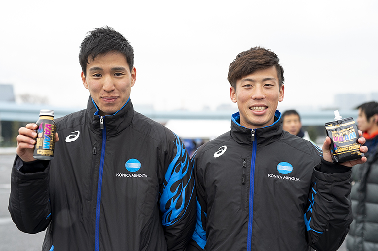 今回のイベントでは、TEAMコニカミノルタの参加者全員に、株式会社 明治様ご提供のVAAMとザバス商品が配布され、各自が出場時間30分前に合わせて試飲を行いました。配布されたのは、水分補給に適したヴァームウォーター、体脂肪のエネルギー活用に着目したスーパヴァームシリーズ、そしてリカバリーにザバスアクアプロテインホエイ100。配布時には、商品の効果的な活用レクチャーが行われました。参加者からは「味が良くて飲みやすかった!」「プロテインもあるのを知ることができたので、今後取り入れてみたい」など声が上がりました。