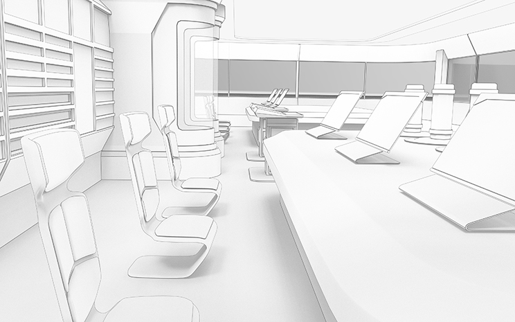 モスグリア社内観、ラボの3Dレンダリング。レイアウト確認、背景描画のベース用に3Dモデルを作成。(モデリング:Blender/CG:Keyshot)