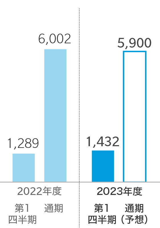 2023年度(2024年3月期)第1四半期は売上高2,664億円(前年同期比+7%)となりました。為替影響を除いた実質ベースでも3%の増収でした。オフィスユニット、プロダクションプリントユニットの販売台数増加、プレシジョンメディシンユニットの検査数の増加などによりデジタルワークプレイス事業、プロフェッショナルプリント事業、ヘルスケア事業で増収となりました。一方でインダストリー事業は、主にセンシングユニットの顧客によるディスプレイ設備投資が端境期となる影響を受け減収となりました。全社的には、前期の中国のゼロコロナ政策にともなう活動制限、半導体などの部材供給のひっ迫、物流輸送期間の長期化などの外部環境が良化したこともあり、増収となりました。