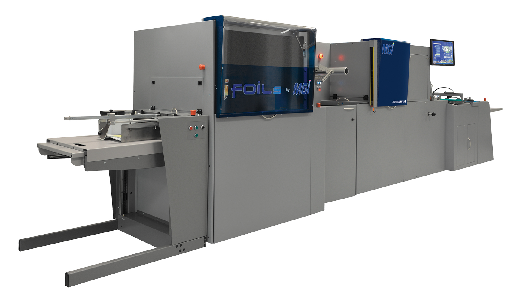 「JETvarnish 3DS」及び「iFOILS」は、MGI社がコニカミノルタの要望に沿って、自社従来製品をトナー方式デジタル印刷機向けに改良、小型化した、コニカミノルタ向け特別仕様品で、両社の提携が活かされた初めての製品といえます。
