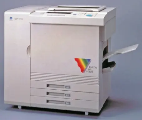 POINT:当時の印刷業界では色校正の簡素化が大きな課題でした。写真用カラーペーパー技術を活かして開発された簡易色校正機「Konsensus(コンセンサス)」は大きな反響を呼び、簡易校正を行うことを「コンセする」と言われるほど、業界に広く浸透していきます。