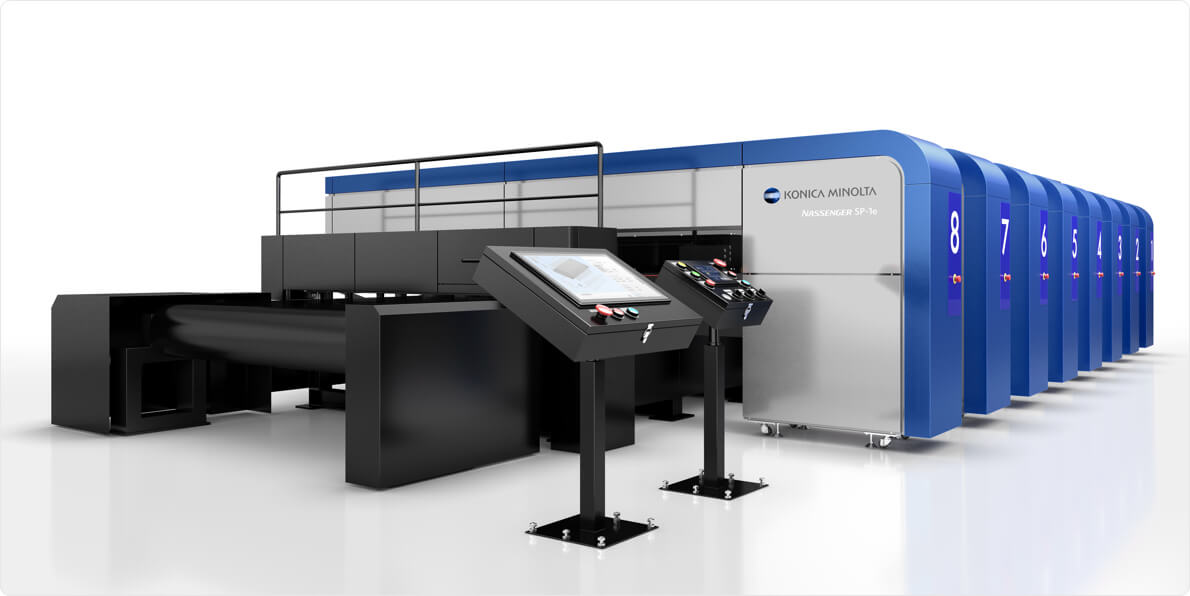 コニカミノルタのNassengerシリーズは、テキスタイル用に開発した小液滴・高密度多ノズルインクジェットヘッドにより、鮮鋭性と高濃度の品位を両立させながら、布用プリンタとしては最速クラスのスピードを実現し、生産効率を格段に高めました。