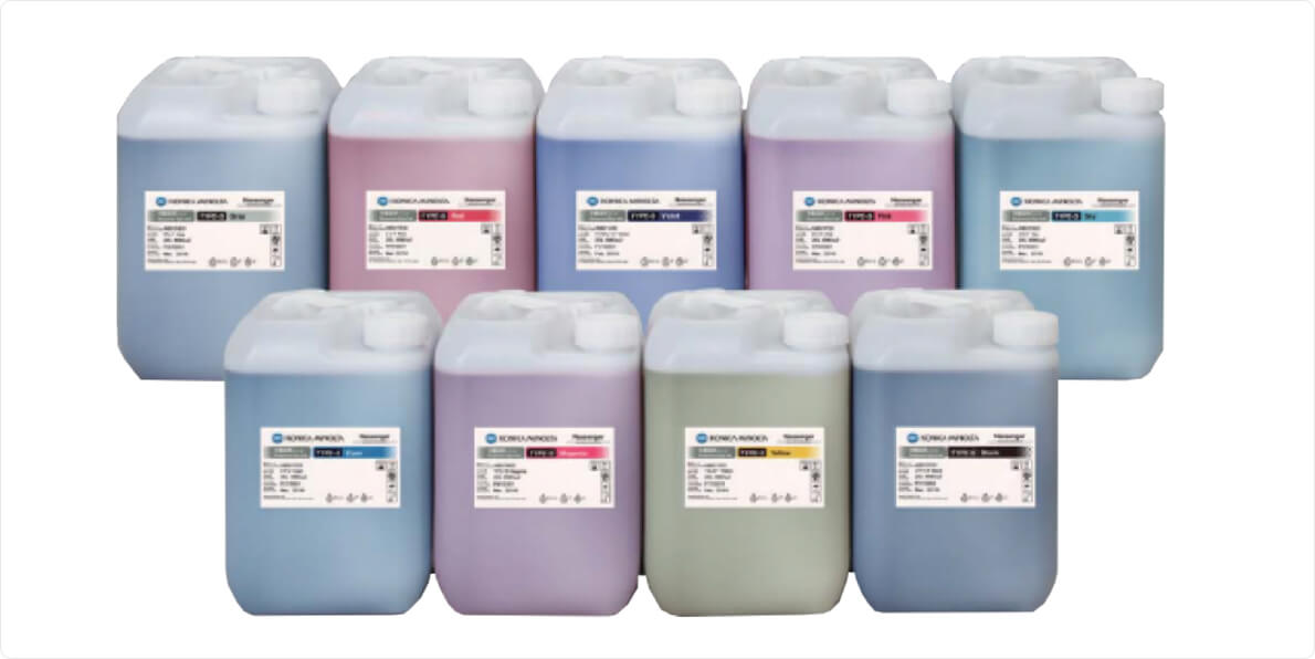 コニカミノルタではこうした状況を防ぐため、特にコアなパーツとなるシステム・プリントヘッド・インクを自社開発することで、迅速な復旧を可能とするだけでなく、お客様の使用状況を共有し効率の良い連携を取ることで、システム全体としての性能を高める事を実現しています。